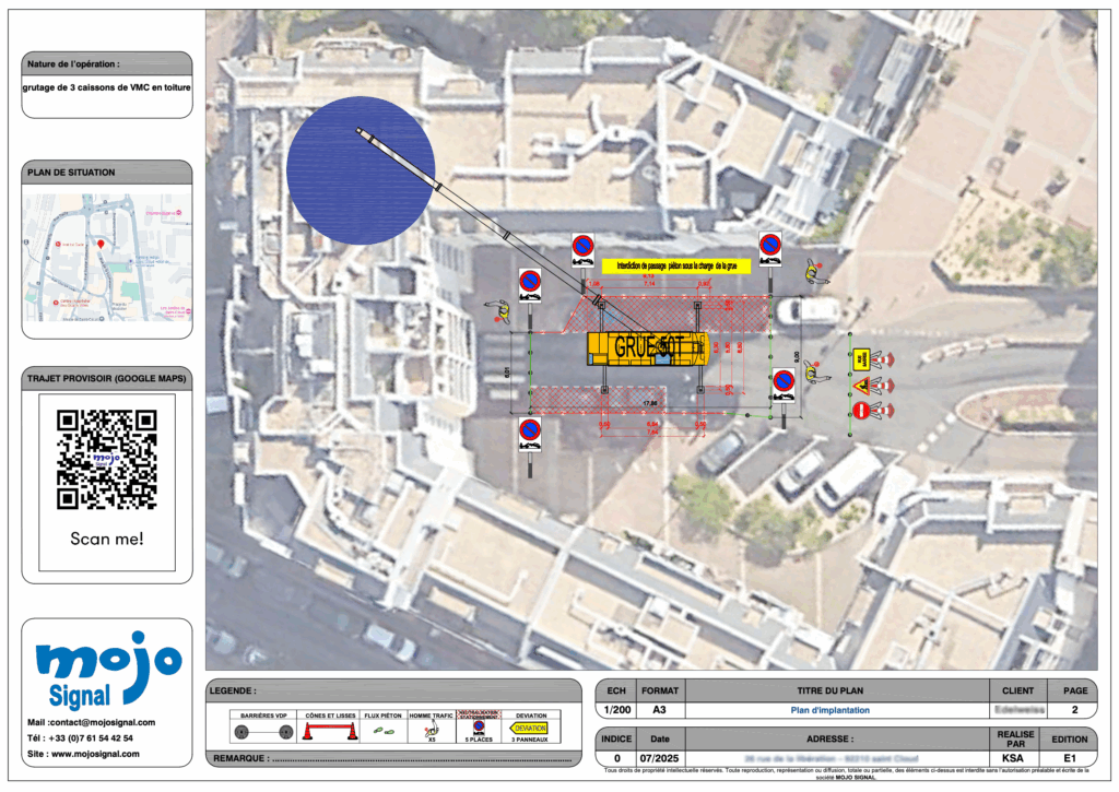 Chez Mojo Signal, nous plaçons la sécurité au cœur de vos chantiers. Nous mettons en œuvre nos plans techniques et les autorisations de voirie pour assurer une intervention conforme et sécurisée. Ensuite, nous accompagnons vos projets avec notre chantier mobile, en déployant des équipements adaptés : barrières, plots, panneaux et plus encore.